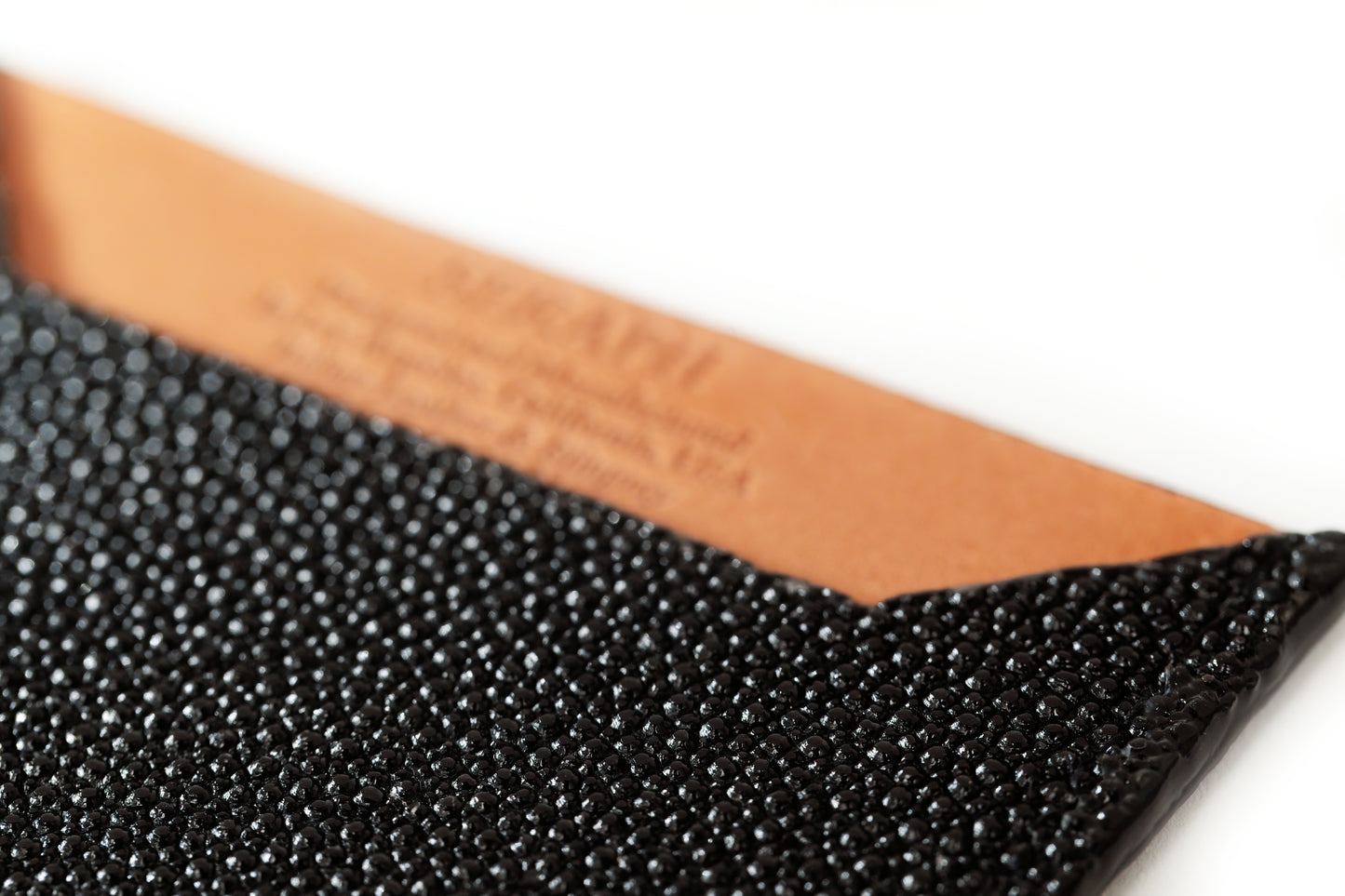 Discover the ultimate blend of luxury and durability with the Bumpy Stingray Wallet by Seraph Design. Handcrafted in Los Angeles, this wallet is designed for those who value timeless elegance and premium craftsmanship. Featuring full Italian leather lining, carefully layered edge paint with a glossy finish, and our signature Seraph emboss, it’s a perfect accessory to elevate your style.
